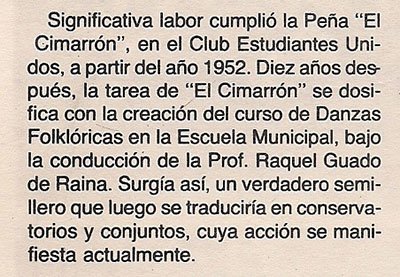 En el año 1952 comienza la Peña Folklórica El Cimarrón.