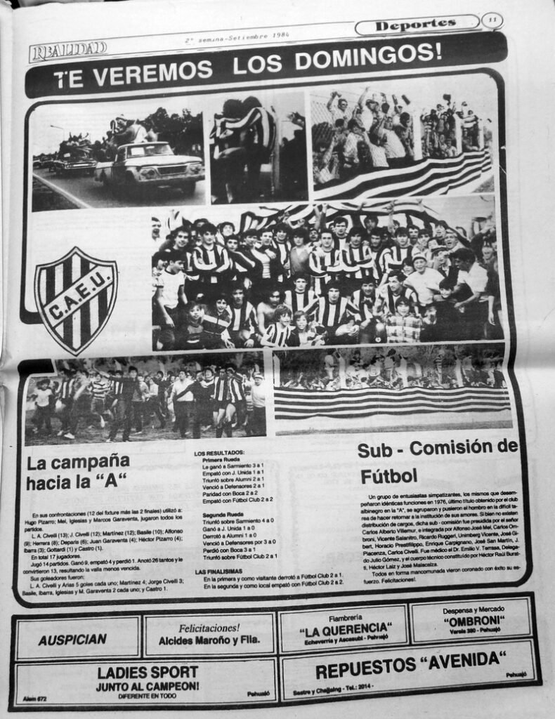 El pasado aniversario número 50 del Campo de Deportes “21 de Septiembre” invita a repasar los grandes momentos vividos en nuestro predio, especialmente aquellos que marcaron la historia del fútbol albinegro. Desde su inauguración, dos vueltas olímpicas de Primera División se dieron dentro de nuestro campo: el Ascenso de 1984 y el Campeonato de 1986. Ambas, recordadas con emoción por generaciones de hinchas y jugadores.
