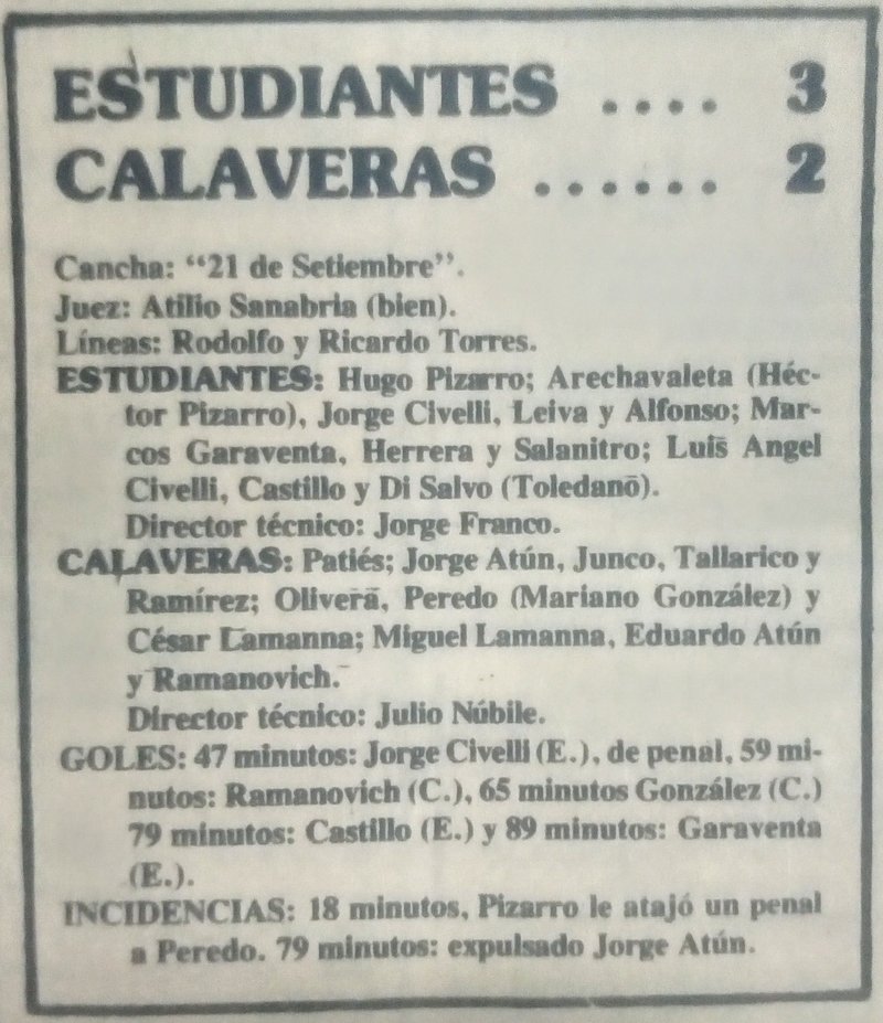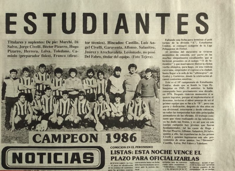 El 24 de agosto de 1986, tras un partido inolvidable ante Calaveras, Estudiantes se consagró campeón luego de 10 años de espera. El triunfo por 3 a 2 quedó grabado en la historia con los goles de Jorge Civelli (de penal), Pablo Castillo y Marcos Garaventa.