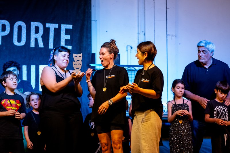 El mensaje de la puesta en escena dialogó directamente con el deporte: el cuerpo que se mueve, que a veces se detiene y otras se anima a ir un poco más allá; el gesto que no sale, el que sale bien y esa alegría silenciosa que aparece cuando algo nuevo florece sin darse cuenta. Todo eso, atravesado por la idea de grupo, de acompañamiento y de crecer junto a otros.